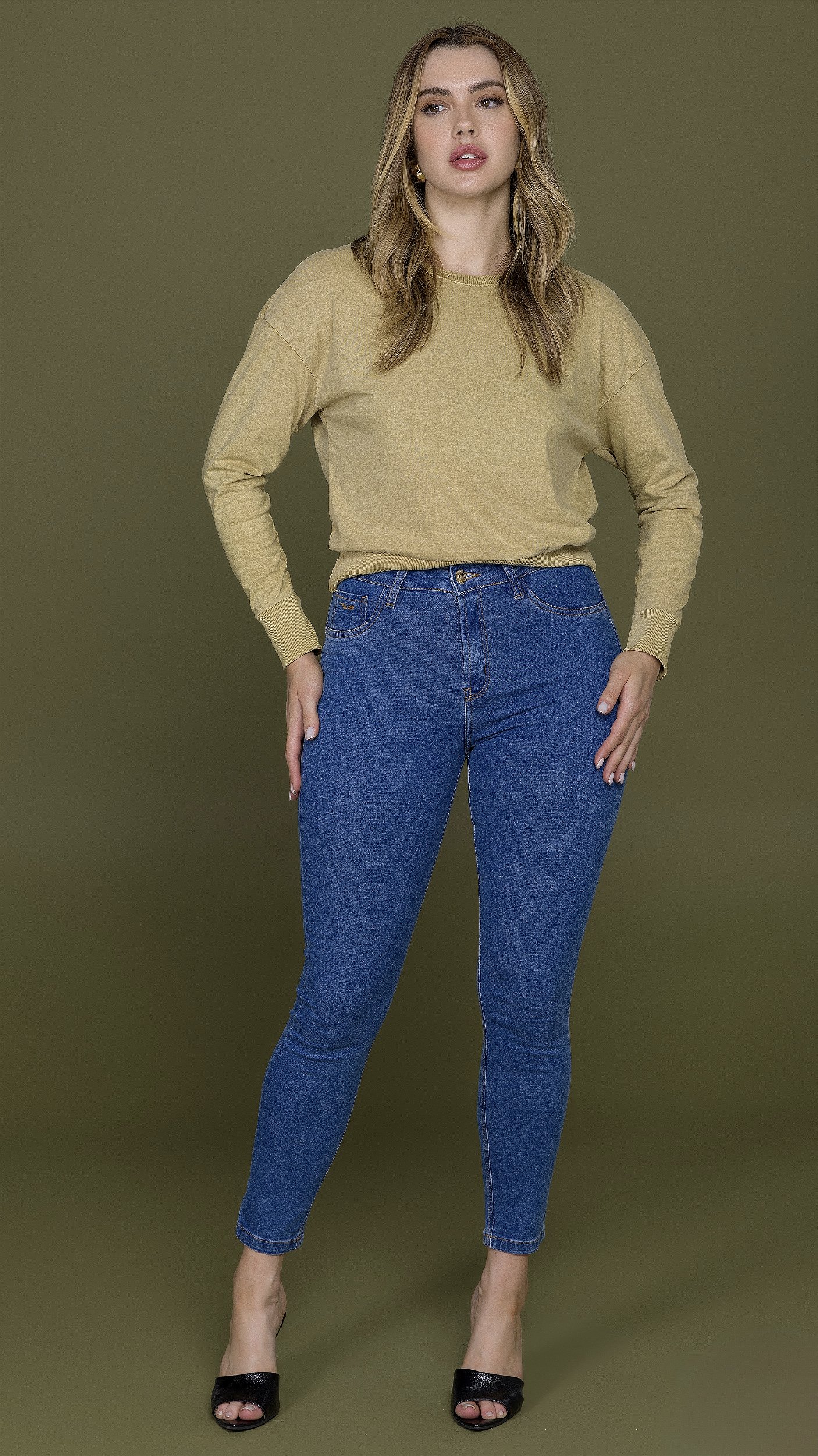 A Calça Feminina jeans skinny é confeccionada em um tecido confortável e resistente, composto por 72% algodão, 26% poliéster e 2% elastano. A modelagem ajustada valoriza a silhueta e oferece elasticidade na medida certa para um caimento perfeito e muito conforto no dia a dia.