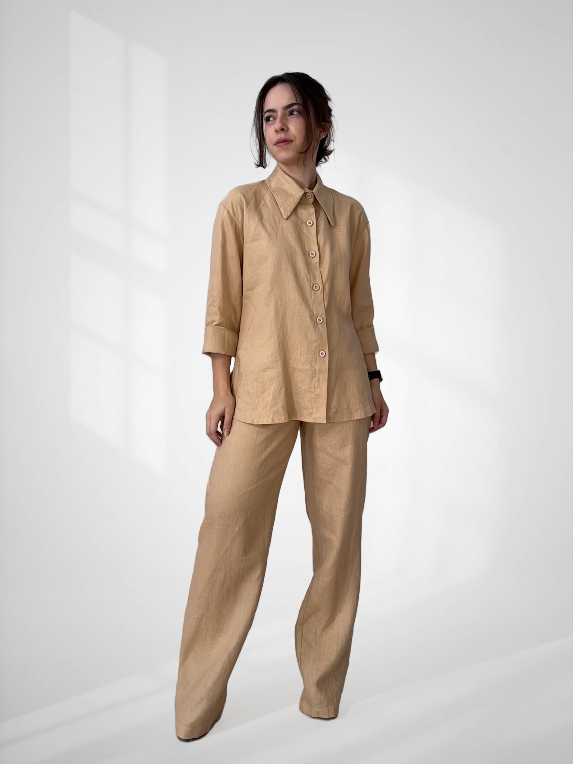 O Conjunto Feminino em Linho é confeccionado em 100% linho, garantindo leveza, frescor e um caimento sofisticado ao vestir. A calça de modelagem reta conta com bolsos frontais e posteriores funcionais, além de cós com passantes para cinto, trazendo praticidade e um toque clássico à peça.