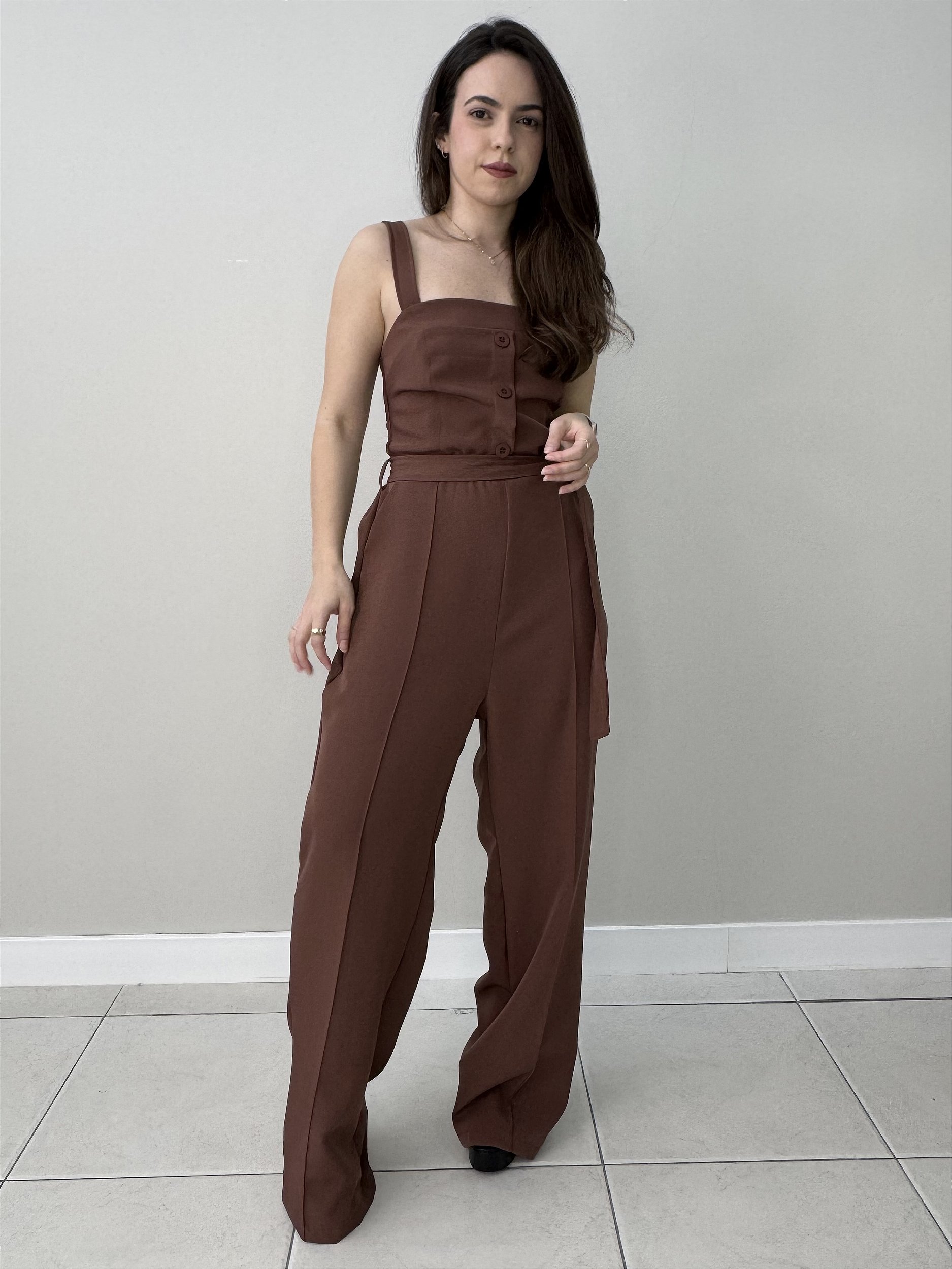 O Macacão é confeccionado em tecido leve com toque macio e caimento estruturado, garantindo conforto e elegância. O modelo não possui bojo, conta com passantes para cinto e acompanha faixa na cintura, que valoriza a silhueta e adiciona um toque refinado ao visual. Com design versátil e sofisticado, é ideal para composições modernas e femininas.