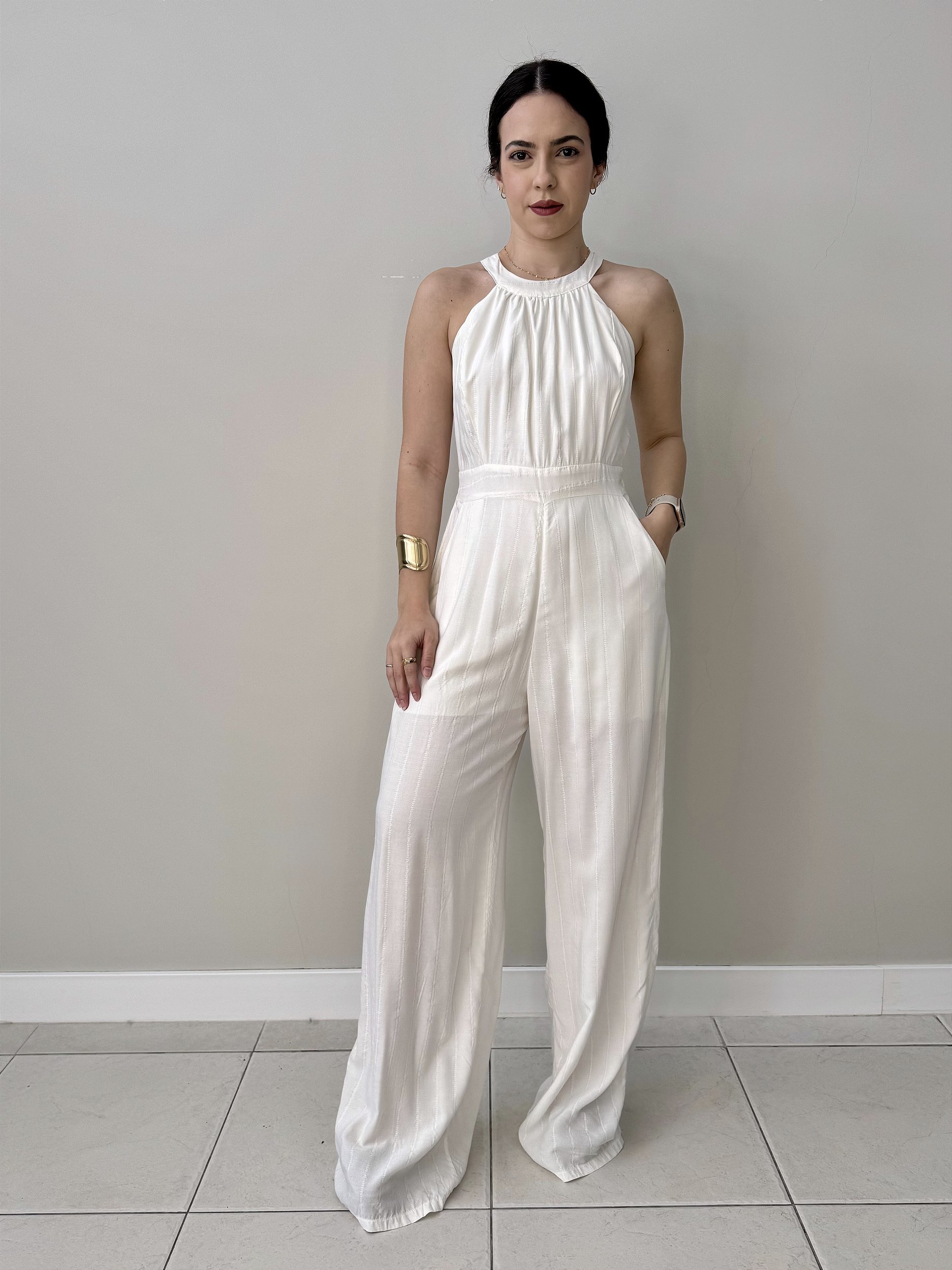 Atenção: Este macacão une leveza e elegância, com detalhes prateados que elevam o visual com sutileza.