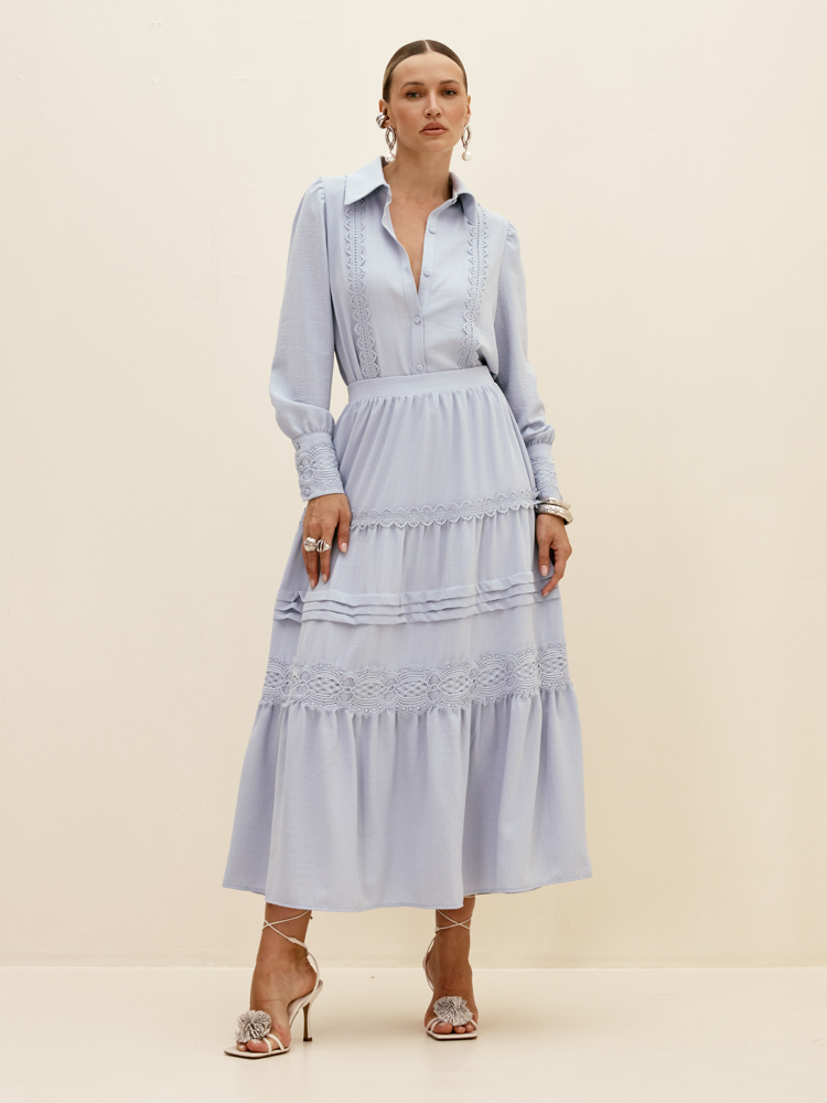 A Saia Feminina Super Midi da Dimy é confeccionada em 100% poliéster, garantindo leveza, caimento fluido e excelente movimento. O modelo apresenta camadas delicadas que criam volume na medida certa, além de detalhes em guipir entre cada camada, trazendo charme, feminilidade e um toque sofisticado ao visual.
