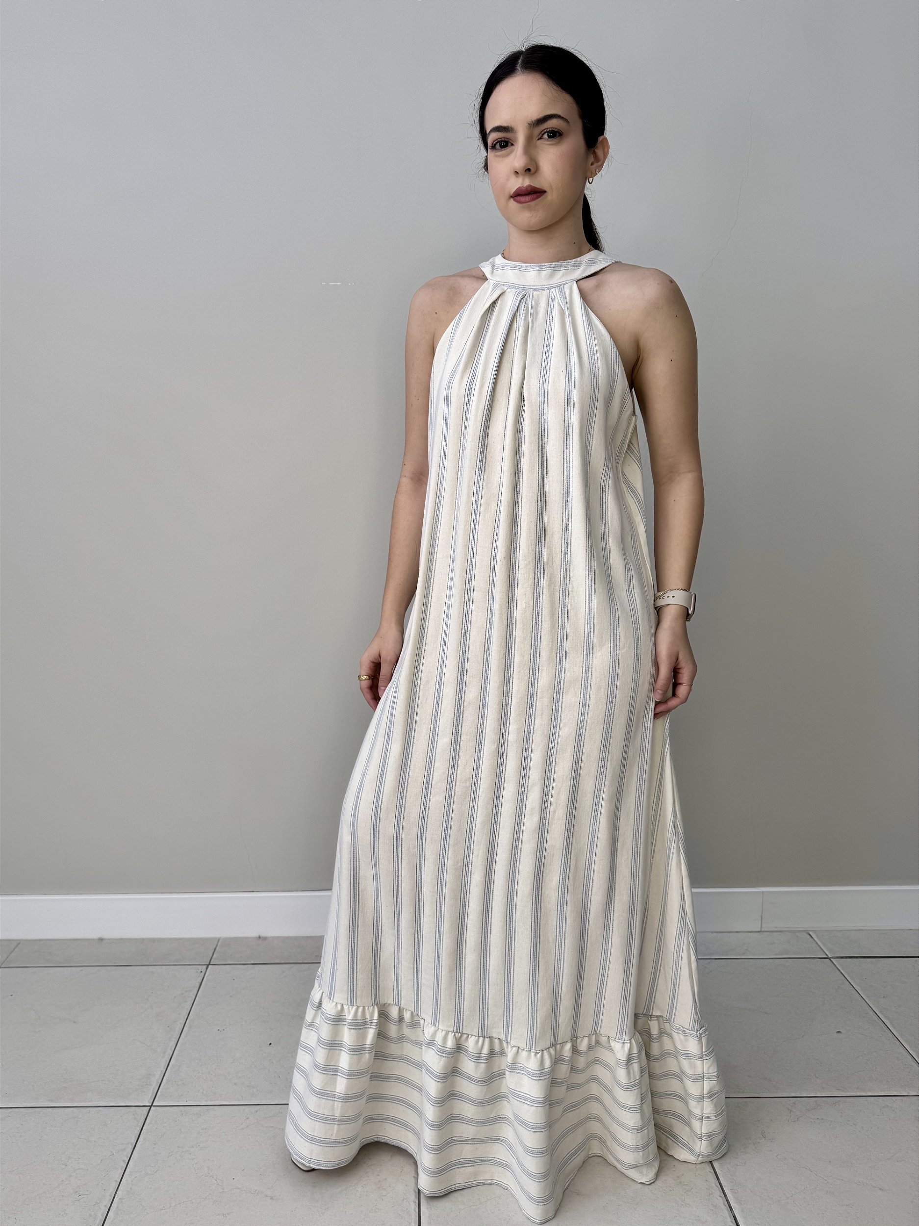 O Vestido Feminino longo traz leveza e elegância em uma modelagem fluida e confortável. Possui amarração no pescoço e é sem mangas, garantindo um visual moderno e sofisticado. Acompanha faixa opcional para demarcar a cintura, permitindo ajustar o look conforme o estilo desejado. Confeccionado em tecido leve de 64% algodão, 35% viscose e 1% poliéster, conta ainda com forro em 100% poliéster para maior conforto e segurança ao vestir.