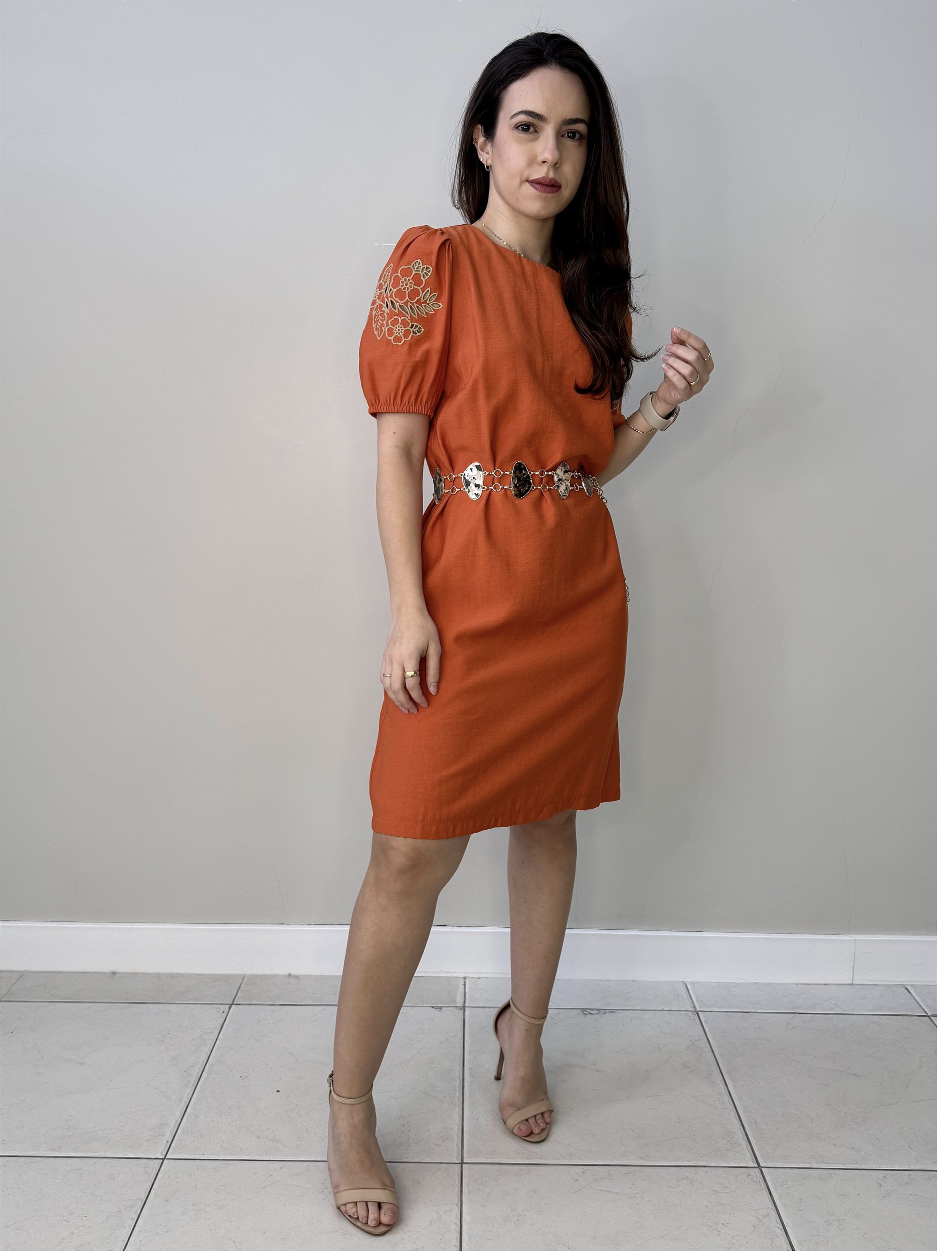 O Vestido Estilo Tubinho é confeccionado em tecido leve com toque macio e caimento estruturado, unindo conforto e elegância. Possui mangas com delicados bordados, fechamento por zíper nas costas e bolsos frontais funcionais que adicionam charme e praticidade. Conta com forro interno até a meia coxa, garantindo conforto e segurança ao vestir. Um modelo clássico e sofisticado, ideal para diversas ocasiões.